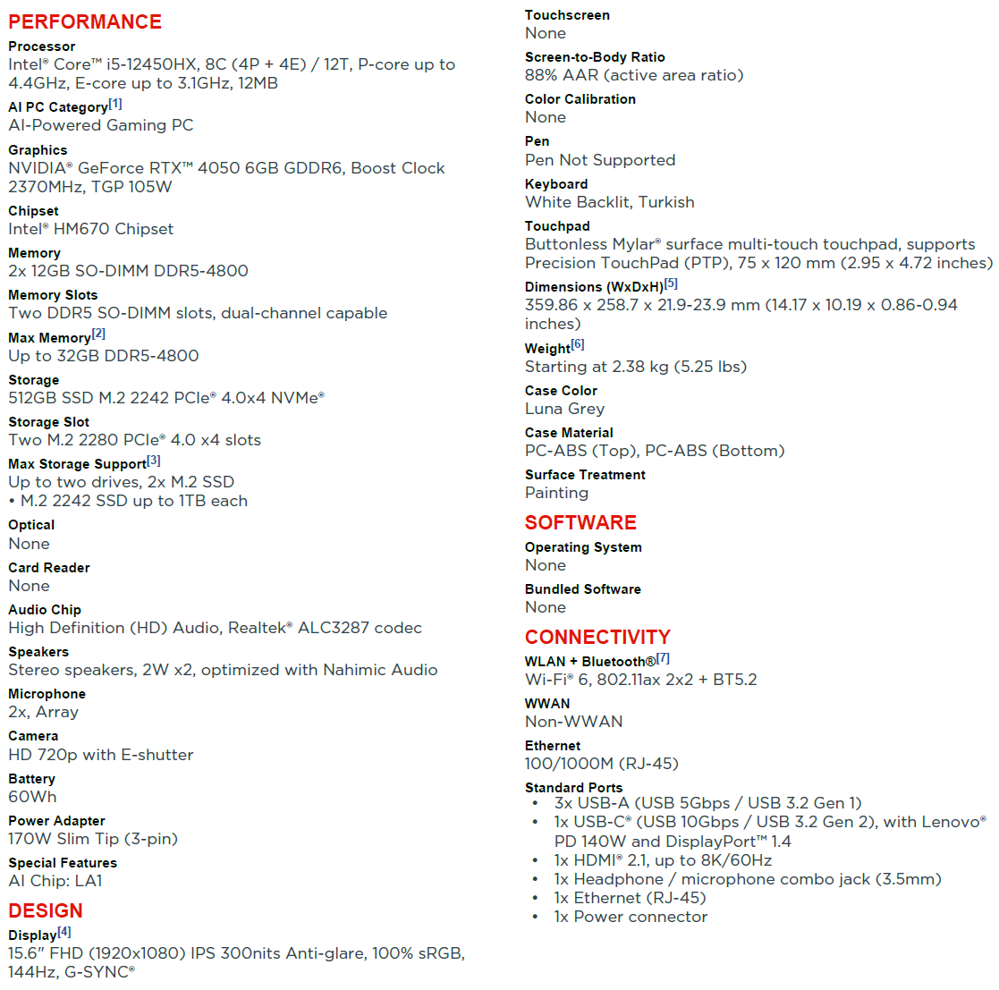 | Ekran Kartı | : | Nvidia GeForce RTX 4050 |
