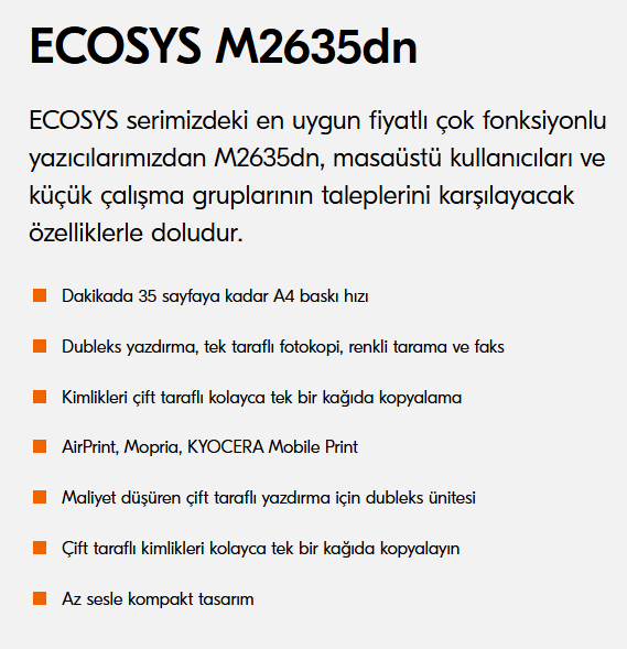 Kyocera ECOSYS M2635DN Çok Fonksiyonlu Network Lazer Yazıcı