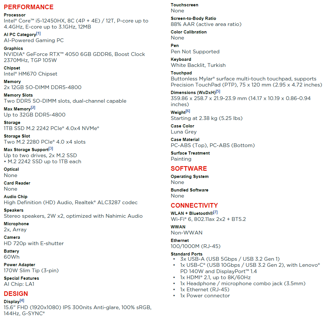 | Ekran Kartı | : | Nvidia GeForce RTX 4050 |